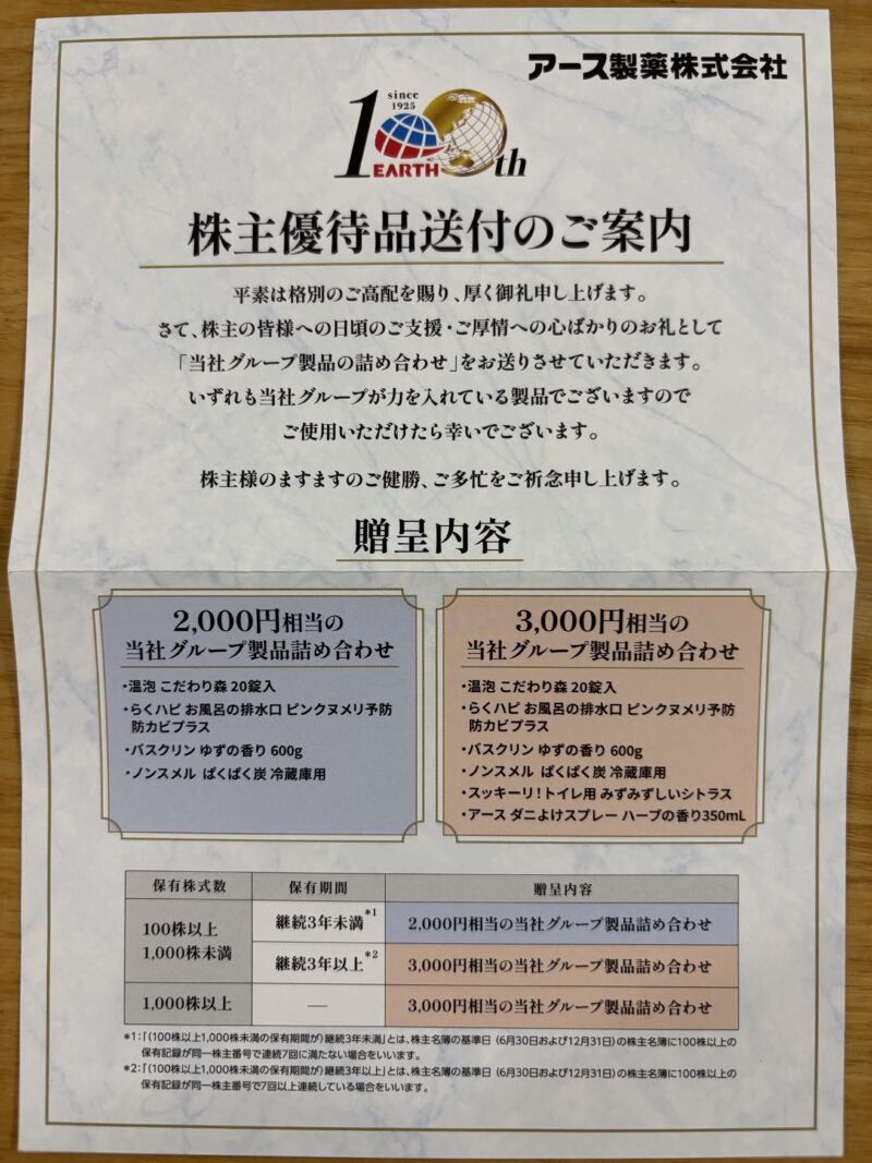 👉 公式ページはこちら:アース製薬 IR株主優待ページ